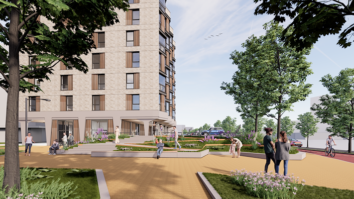 . Het project Woodstone bestaat uit vijf woontorens, met 204 appartementen en een oppervlakte van 18.700 m