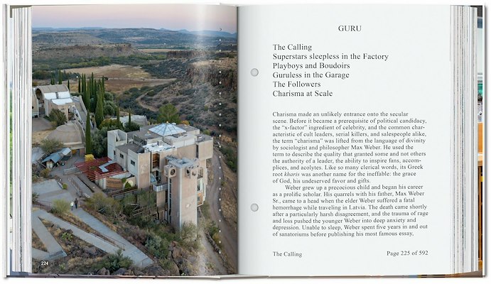 “We fietsen door Frank O. Gehry's radicale, speelse ruimtes voor digitale nomaden in de reclamewereld, wankelen onder het gewicht van stapels ponskaarten, voelen de pasvorm van ons lichaam in de Aeron Chair, beantwoorden de telefoon in het bed van Hugh Hefner en scrollen via de feed van Lil Miquela”, schrijven de auteurs.