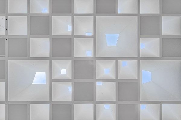 In het dak zijn onregelmatige trapeziumvormige kappen aangebracht, die het licht filteren en de warmtelast van direct zonlicht beperken. Via vides, glazen kappen en lichtopeningen boven de verplaatste Statenzaal wordt het licht naar beneden geleid. Het patroon van de lichtkappen is geïnspireerd op de aanwezige wandreliëfs van kunstenaar Henk van der Plas (1936-2009) en op het werk van Jan Schoonhoven (1914-1994).