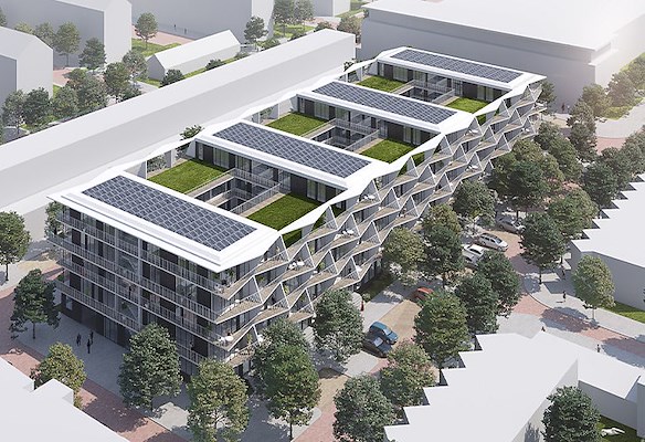 MVSA realiseert woongebouw met opvallende gevel tegenover zaagtandwoningen Van Gool