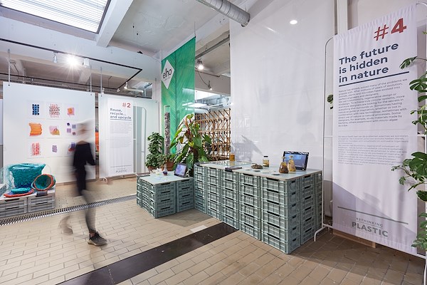 Een aantal jaren geleden startte Yksi Expo, dat zich sterk richt op de promotie van circulair design, het project Rethinking Plastic. Na een jaar werd het project door Dutch Design Foundation ‘geadopteerd’ als Embassy of Rethinking Plastic, vertelt Leonne Cuppen, oprichter van Yksi Expo en curator van de Embassy. In de twee jaar dat het project – met bijvoorbeeld exposities, ontwerpend onderzoek en verdiepingsprogramma’s – nu loopt, zijn de thema’s enigszins veranderd en constateert Cuppen ook bij deelnemers een verschuiving in interesse.
