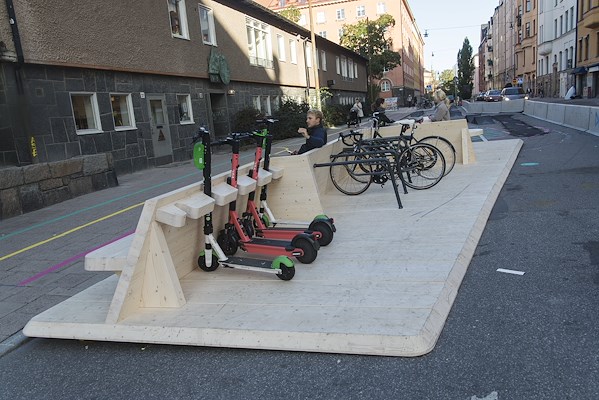 Dat een andere omgang met mobiliteit in woonbuurten de sociale cohesie kan versterken, blijkt uit een experiment, dat momenteel wordt uitgevoerd in een aantal buurten in Stockholm. Adams legt uit dat bij dit Zweedse experiment, ‘Street Moves’, de buurtbewoners zelf de openbare ruimte mogen inrichten met verplaatsbare houten modules. Ze kunnen naar gelang de behoefte of de wens op een bepaald moment van de dag de straat anders indelen: bijvoorbeeld ’s ochtends de straat breed houden, maar gedurende de dag lege parkeerplekken of een deel van de straat met de modules omvormen tot een groene ruimte, een terras of een speelplek.