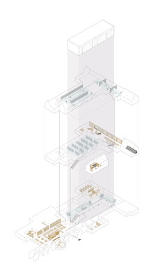 De indeling van het gebouw maakt dat de verschillende doelgroepen – geïnteresseerd publiek en professionals – hun eigen weg en tempo kunnen bepalen. Krophollerprincipes en -details zijn hersteld en inspireerden Civic bij de nieuwe ingrepen. In het café en de winkel zijn innovatieve en duurzame materialen toegepast als kalkhennep en een experimentele keramische tegelwand.
