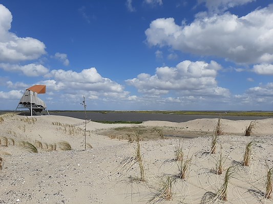 De door Vista ontworpen uitkijktoren De Steltloper op de Marker Wadden