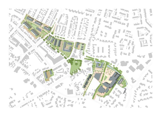 Zo wil het bureau de vroeg naoorlogse woonbuurten beter verbinden met de historische structuren van de zandruggen. Ook het versterken van de twee lange lijnen in oost-westelijke richting moet resulteren in een betere verbinding van het oude dorpshart met de naoorlogse uitbreidingen.