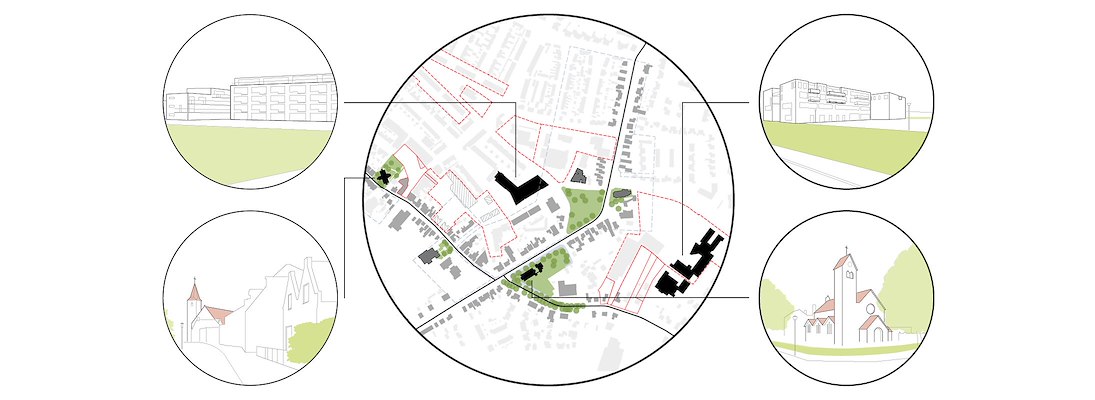 Een aantal dicht bij elkaar gelegen locaties biedt kansen voor een toekomstbestendig dorp. Deze locaties liggen in het hart van de naoorlogse uitbreidingen.