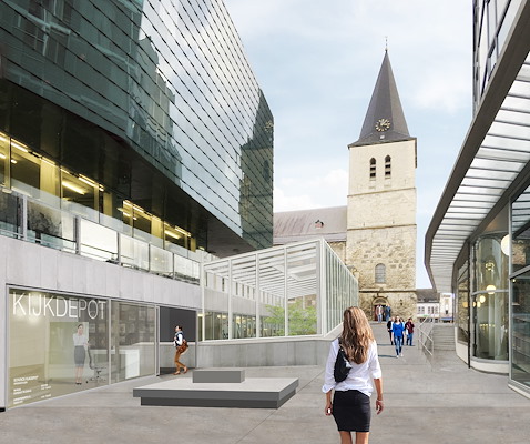 De zeven meter diepe patio krijgt een nieuwe functie als verblijfs- en expositieruimte waar Schunck driedimensionale kunstwerken zal presenteren. Aan de kant van de bieb en muziekschool ligt straks het kijkdepot, waar de museale collectie van Schunck via wisselende thematische tentoonstellingen wordt gepresenteerd. Bezoekers kunnen met een druk op de knop de gepresenteerde werken op rekken tevoorschijn te laten komen, meldt Schunck. Het kijkdepot biedt ruimte voor telkens zo’n 150 objecten.