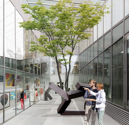 De verdiept liggende patio tussen het Glaspaleis en de bibliotheek/muziekschool wordt momenteel niet gebruikt als museale ruimte. Met de nieuwe functie vangt Schunck een aantal vliegen in één klap: de instelling kan meer werken uit zijn permanente kunstcollectie tentoonstellen, deze ruimte aantrekkelijker en toegankelijk voor het publiek maken en de veiligheid vergroten. De randen van de patio liggen momenteel op straatniveau, waardoor waaghalzen zo naar beneden kunnen vallen. Ook gooien voorbijgangers veel afval in de patio.