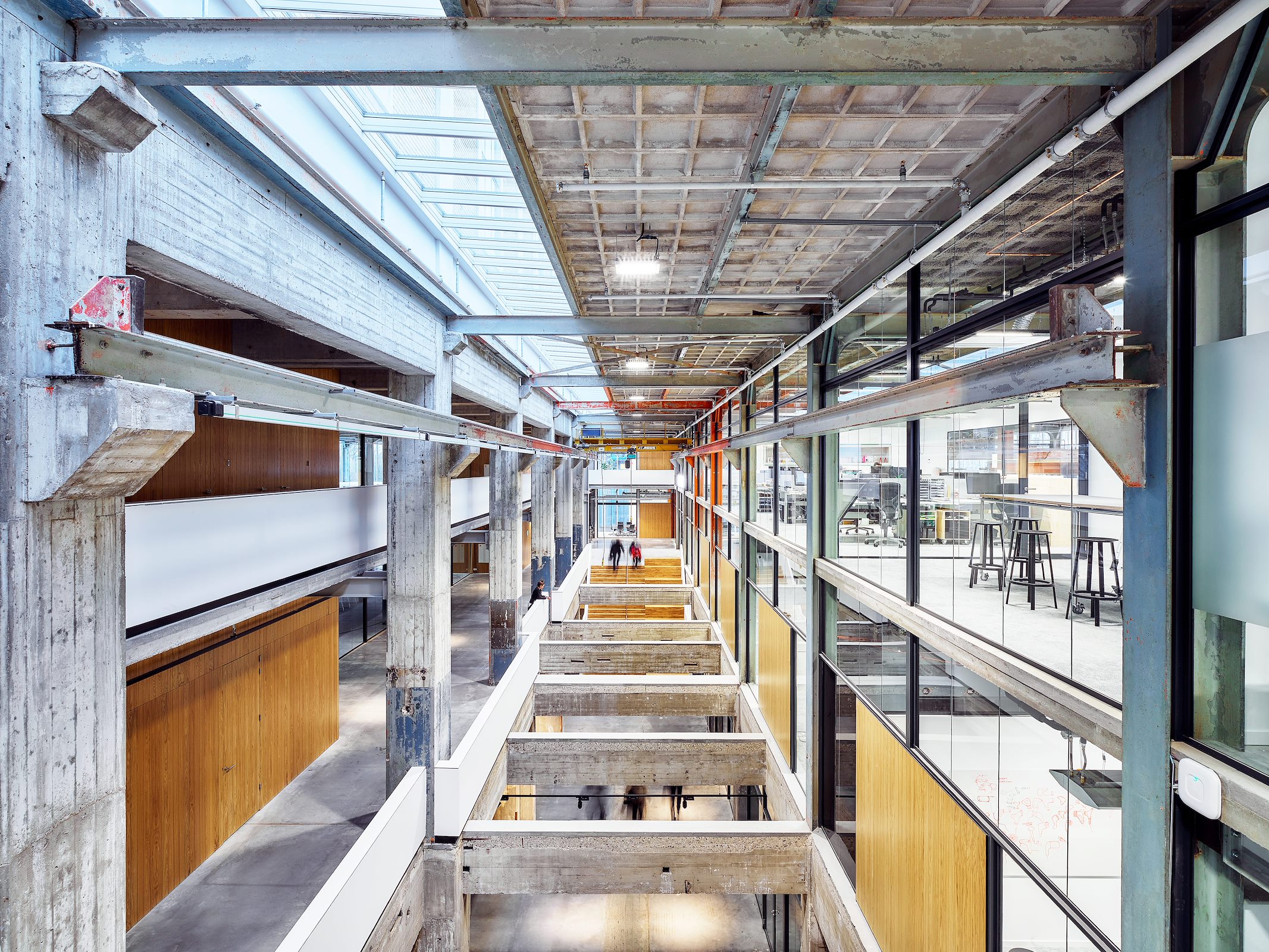 “De aandacht ging destijds in Eindhoven vooral nog uit naar Strijp-S. En op Strijp-T was toen nog zoveel industrie gevestigd dat er vanuit milieuregelgeving bijna niets kon. Geen kantoorfunctie bijvoorbeeld. Mijn vader is toen de discussie aangegaan of de aanwezige industrie eigenlijk nog wel echt zo moest worden beschouwd. Het grootste deel bestond feitelijk al uit het soort werkplekken dat hij zelf ook wilde realiseren. Onder het motto ‘make, create, innovate’ is dat toen opgelost met een slim toelatingsbeleid. Inmiddels zitten er allerlei soorten bedrijven, van een ontwerpstudio met werkplaats tot allerlei tech-scaleups, maar ook patentrechtadvocaten bijvoorbeeld. En voor die mix werkt het gebouw echt perfect.”