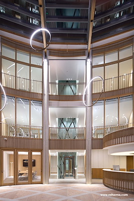 Het verlichtingsplan is afgestemd op de nieuwe indeling, maar ook op het bestaande lijnenspel in het gebouw. “Door in het hele gebouw met licht en donker te spelen ontstaat contrast, met oog voor huiselijke sfeer en functionaliteit. De verlichting in de corridors draagt bij aan het lijnenspel dat privacy op werkplekken versterkt. In de kantoren zelf bevorderen functioneel belichte plekken het werkklimaat”, aldus Reitsema & partners.