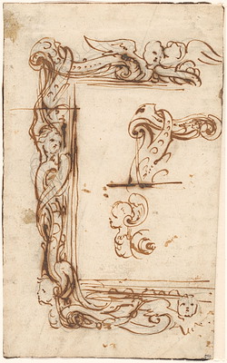 Ontwerp voor een lijst, met een verbeterde oplossing voor de linker bovenhoek en de linker onderhoek, anoniem, ca. 1610 - ca. 1625. Collectie Rijksmuseum