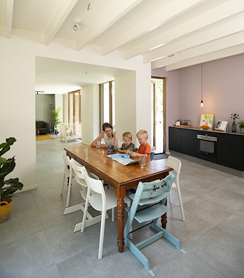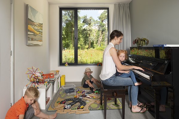 Over de indeling en vormgeving is zorgvuldig nagedacht. Daardoor biedt het tweelinghuis mogelijkheden voor makkelijk contact tussen ouders en (klein)kinderen, maar ook voldoende ruimte voor privacy.
