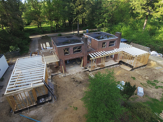 De twee bestaande woningen hadden dezelfde oppervlakte en een nagenoeg eendere plattegrond. Jonkers gezin, met jonge kinderen, had echter andere woonwensen dan zijn ouders hadden. Samen werkten ze aan een ontwerp voor verschillende woningen die samen toch één prettig geheel vormen.