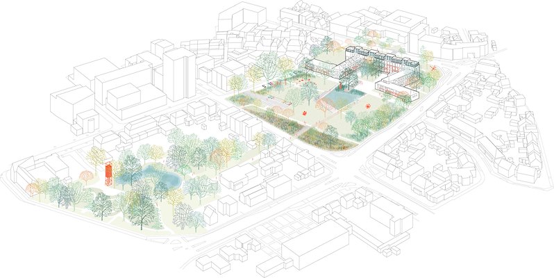 heeft een aansluitend herontwerp voor het bijbehorende park gemaakt.
