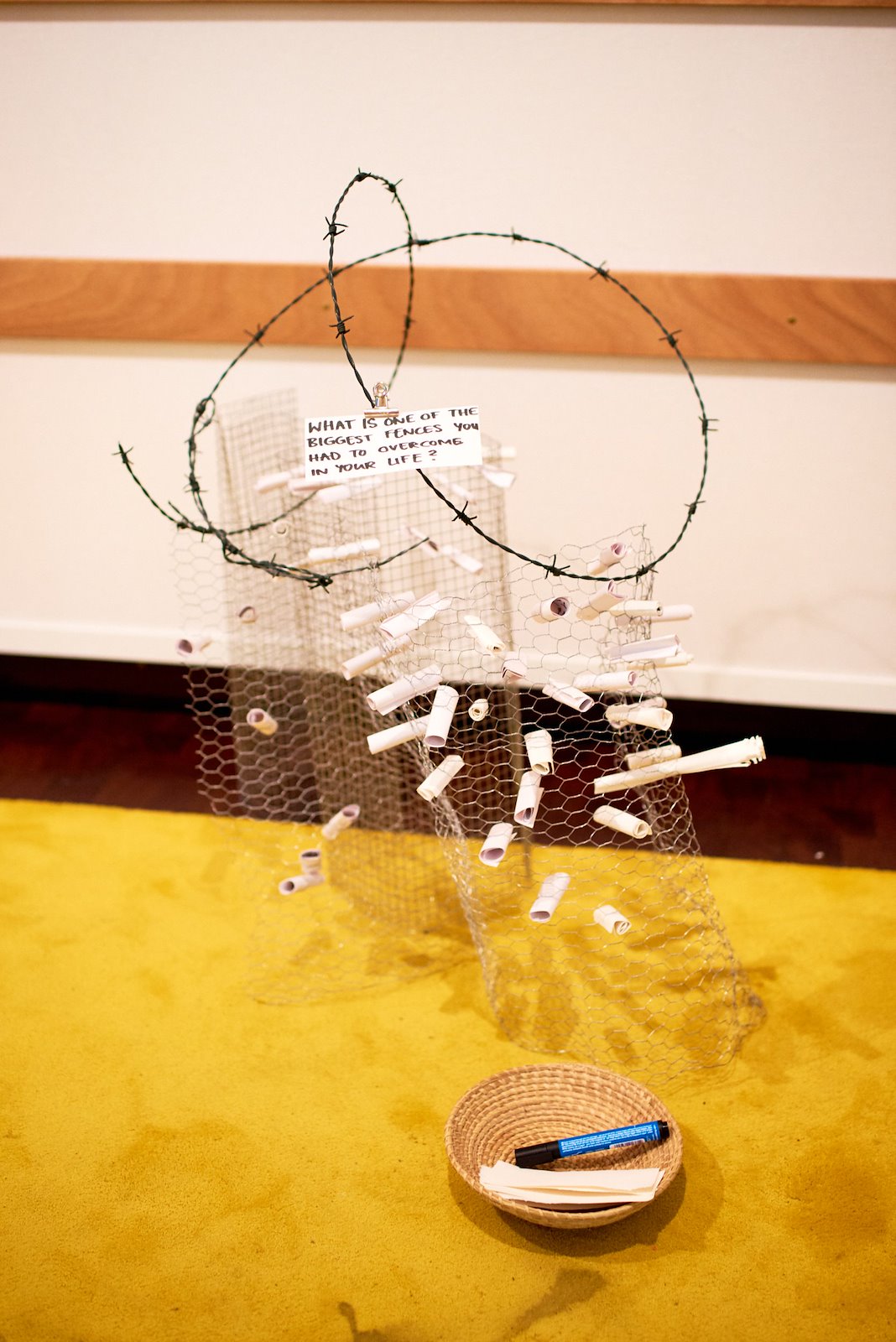 Het programma dat de Embassy of Inclusive Society tijdens DDW 2022 presenteerde, was dan ook niet gericht op het tonen van oplossingen, maar in de eerste plaats op het aanreiken van gereedschappen voor een het proces van leren en ontleren en sensitiviteit voor inclusie. De Embassy, die dit jaar haar plek had in het Van Abbemuseum, presenteerde een sterk inhoudelijk programma met onder meer workshops, dialoogsessies, performances, een symposium en kunst- of designinstallaties die de bezoeker ervaringen moesten geven. “Inclusiviteit kun je niet benaderen door gewoonweg projecten te laten zien”, legt de conservator uit. “Dan wordt het consumeren van het tentoongestelde. Tegelijkertijd vraagt een inhoudelijk programma tijd van de bezoeker, en dat vinden veel mensen bij zo’n groot evenement als DDW moeilijk. Daarom hebben we ook nagedacht over we ook die bijvoorbeeld die workshops ook als ruimtelijk interessant konden presenteren.”
