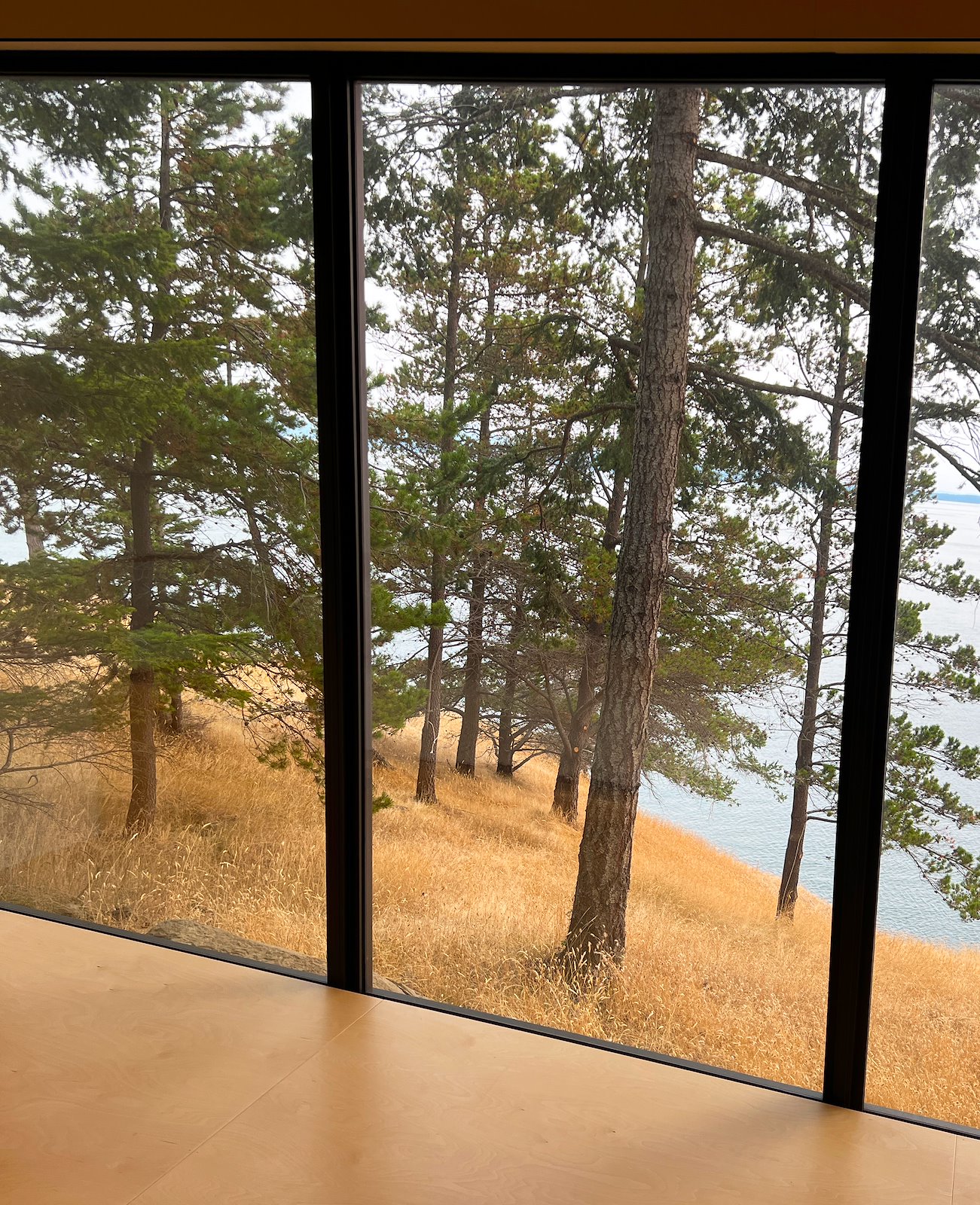 Het huis dat Andrew voor zichzelf heeft ontworpen bevindt zich op Saturna island, 50 km ten zuiden van Vancouver, en is alleen bereikbaar met ferry of watervliegtuigje. Aangekomen op dit niet al te grote eiland proef ik direct de creatieve geest van de gemeenschap hier. Er wonen veel architecten, artiesten en beeldend kunstenaars.