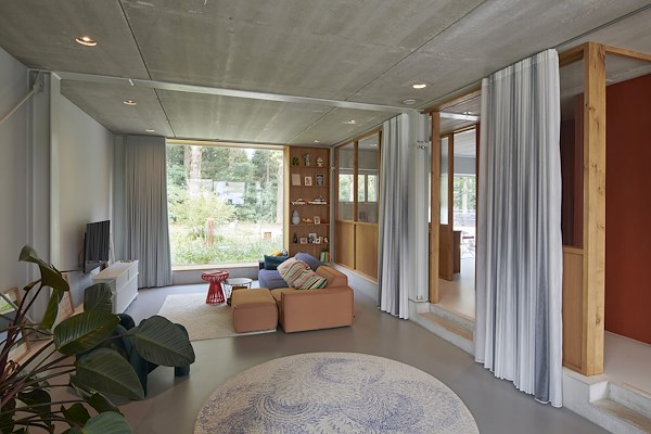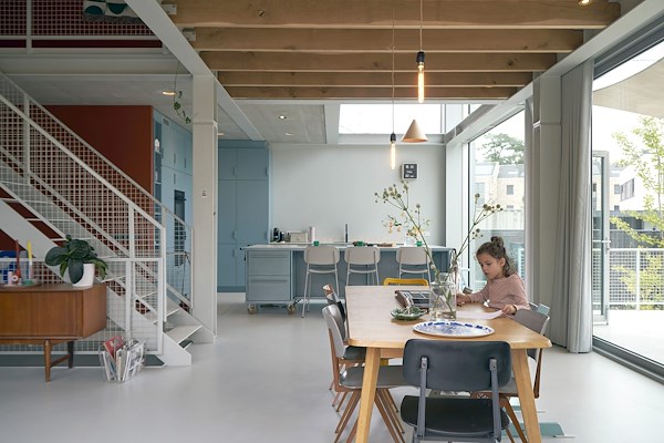 Het interieur van de woning is ontworpen door Studio of Things en Studio Jeroen Wand. Het eindresultaat vatten Eek en Dekkers samen als ‘Een eenvoudig volume waar ruimte, licht, lucht, materiaalgebruik en kleur kwaliteit creëren voor het gezinsleven.”