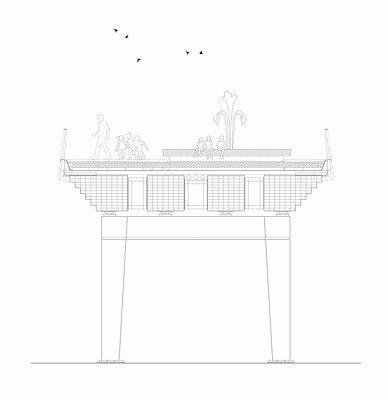 De brug is bedacht als een verlengde en opgetilde straat, met groen, water en zitgelegenheden. Er wordt een aaneenschakeling van verschillende typen plekken gerealiseerd, waarbij de zichtlijnen dankzij de S-vorm telkens subtiel veranderen.