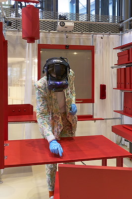 In een installatie op ware grootte reconstrueert Strunden Alisons werkkamer, die – samen met het kantoor en de woning van de Smithsons – niet meer in de originele vorm bestaat. De reconstructie is gebaseerd op een foto van Sandra Lousada, een met Alison en Peter bevriende fotograaf. De installatie combineert ruimtelijke ervaringen van belangrijke ontwerpen door Alison Smithson met tekstdocumenten en beeldcollecties, legt HNI uit.