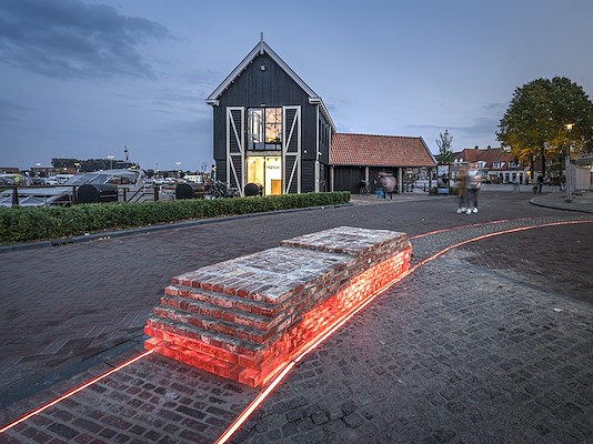 heeft een concept gemaakt, waarvan nu de eerste resultaten zichtbaar zijn op de Havendam. Hier wordt de oorspronkelijk loop van de stadsmuur weergegeven met behulp van een dubbele lijn LED-verlichting van bijna tweehonderd meter lang.