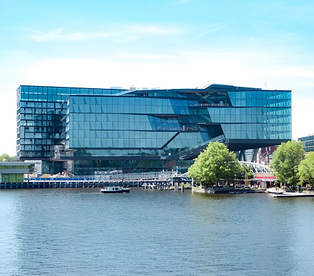 Voor UNStudio vormden het reageren op de plek, stad en water, het involveren van de geschiedenis en het anticiperen op de aard van de gebruikers belangrijke leiddraden. De gefacetteerde, transparante glazen gevel zorgt voor zowel een onbelemmerd zicht in en uitzicht uit het gebouw naar vrijwel alle zijden. Alleen aan de westzijde grenst het gebouw aan het naastgelegen conservatorium. Tegelijkertijd weerspiegelt de gevel door de verschillende gekantelde glasvlakken zowel de stad, spoor als de golven van het omliggende water van het Oosterdok. En er ontstaan, door de voortzetting van zichtlijnen in het interieur, nieuwe relaties tussen gebouw en omgeving. Bij afwezigheid van balkons fungeert het gebouw nu feitelijk in zijn geheel als een balkon op de stad.