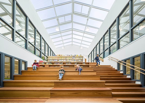 De trappen met een combinatie van hoge en lage treden lijken de laatste jaren in steeds meer (basis)scholen te worden toegepast. Ze zijn er in verschillende soorten en maten: van breed naar een aula of speelruimte uitwaaierende trappartijen tot eerder functionele stijgpunten die met een intiem hoekje aan zitplekken zijn uitgebreid. Het zijn trappen die gebruikt kunnen worden voor voorstellingen of presentaties, waar kinderen kunnen samenwerken en -spelen, of een eigen plekje kunne vinden. Niet alleen binnen het gebouw: soms zijn tribunetrappen ook aan de buitenzijde van de school toegepast.