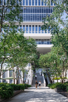 opgeleverd. Het project behelst twee kantoortorens, vier lagere kantoorgebouwen en winkels. De bebouwing is door middel van (rol)trappen en groene pleinen verbonden met een naastgelegen nieuw metrostation.