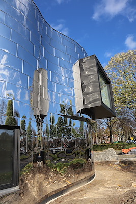De golvende vorm van het gebouw drukt beweging uit. De bekleding met gepolijste roestvalst stalen delen, zogenoemde losanges, weerkaatste de dynamiek in de omgeving. Bij veranderend licht heeft de gevel bovendien steeds weer een andere uitstraling.