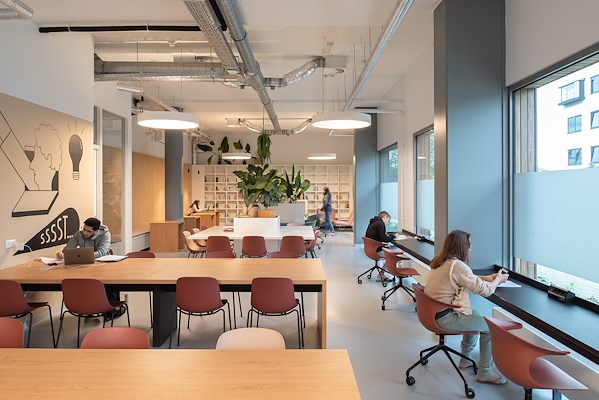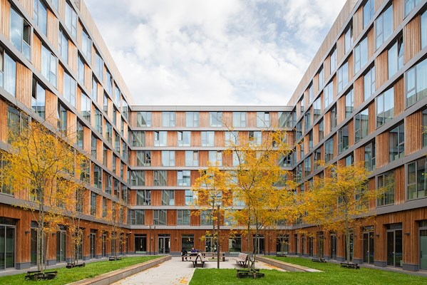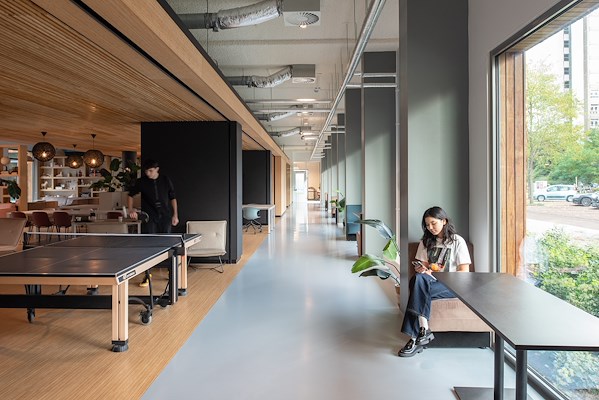 Naast de 500 kamers beschikt het gebouw over gezamenlijke ruimten op de begane grond. De bewoners kunnen elkaar ontmoeten in de studieruimte, fitnessruimte, woonkamer, keuken en de groene binnentuin. Ook de ruime en lichte gangen bieden aanleiding tot spontaan contact, aldus het architectenbureau. Verder is in het gebouw een fietsenstalling opgenomen.