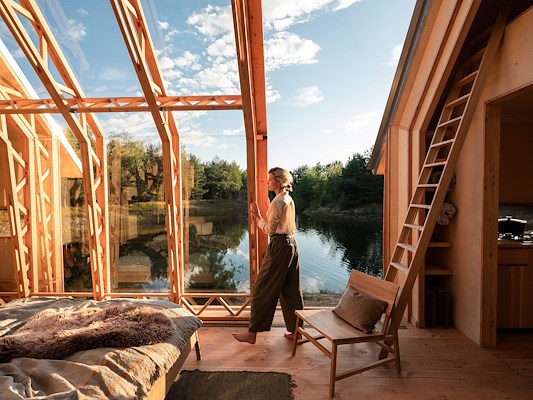 Wat begon als een ontwerp voor een bijzonder tuinhuis resulteerde in ANNA Stay, een houten (vakantie)woning met een verschuifbare dubbele schil. Hierdoor kan de bewoner het huis aanpassen aan het weer of de eigen stemming, en verbinding vinden met de omgeving en de natuur.