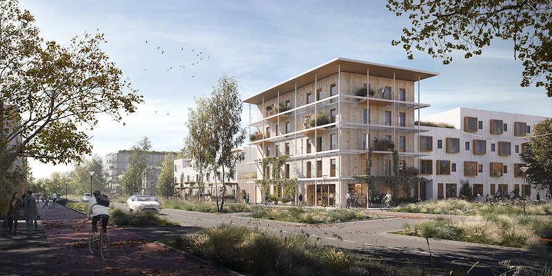 Een samenwerkingsverband met onder meer Space&Matter, NL Architects en ZUS heeft de tender voor het eerste woningbouwproject op Strandeiland in de Amsterdamse wijk IJburg gewonnen. Het plan behelst 215 woningen en functies als een buurtcentrum en mobiliteitshub, verdeeld over vijf ‘buurtschappen’ met een eigen landschappelijke ‘biotoop’.