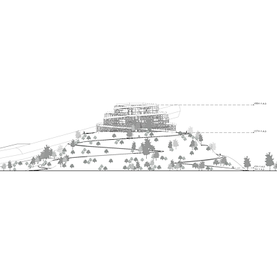 De beklimming, zoals nu ontworpen door het Rotterdamse bureau ZUS, voert via