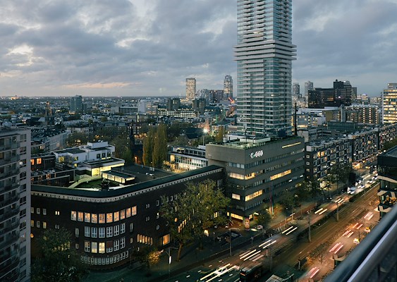 Toren in centrum Rotterdam als een woonerf op hoogte