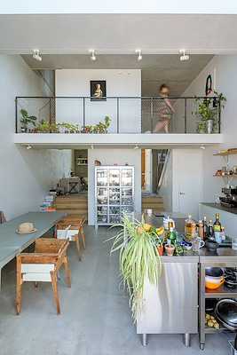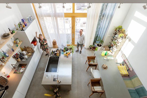 Bijzonder hoge woonkeuken als centrale leefruimte