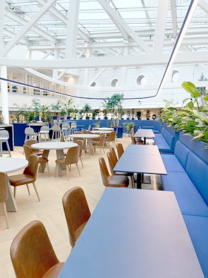 Met een grote diversiteit aan zittypologiee¨n bevindt het restaurantgedeelte zich nu op het gerenoveerde podium, direct onder het atrium. Het nieuwe gebied is weelderig groen, comfortabel en intiem; volgens Hollandse Nieuwe geeft het bijna het gevoel buiten te zijn.