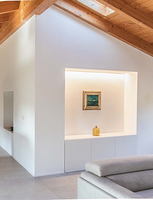 Nadat de bouw van een appartementencomplex in het Noord-Italiaanse plaatsje Sant-Ambrogio kwam stil te liggen, kreeg de Nederlandse architect Tim de Graag het verzoek een van de woningen opnieuw te ontwerpen. De Graag ontwierp voor de kunstminnende opdrachtgever een licht en ruimtelijk appartement in zwart-wit en naturelle tinten.