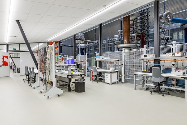De ontstane combinatie van hoogspanning, laagspanning, zonne-opwekking en netwerksimulatie in één laboratorium is uniek in de wereld, vertelt HP Architecten. Tegelijkertijd betekende het bundelen van deze vakgroepen – voorheen verspreid over het gebouw van Elektrotechniek, Wiskunde, Informatica – een flinke ontwerpuitdaging.