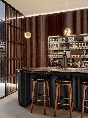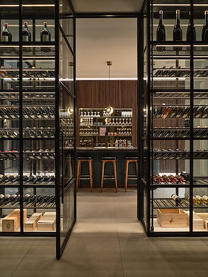 In de kelder bevinden zich een wellnessvoorziening en een zwembad. Op strategische plekken zijn koekoeken geplaatst en een groene wand met verticale beplanting. Hierdoor verandert de kelderruimte in een plek van rust met natuurlijke materialen, water, groen en indirect daglicht, verklaren de architecten.
