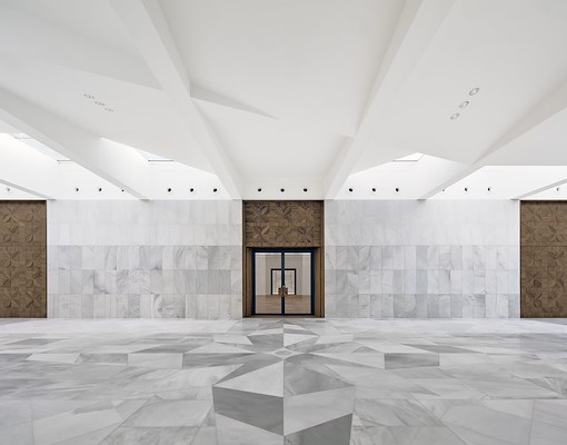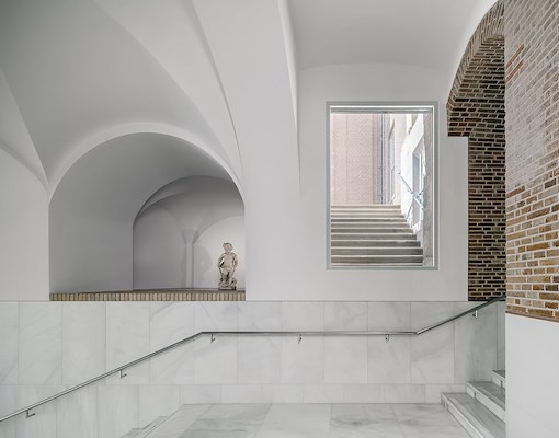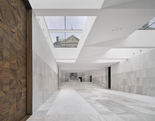 De centrale as tussen de zalen is passend Grand Foyer genoemd. Het is zowel een plek om van het ene naar het andere te bewegen als een plek voor een moment van rust. De centrale as leidt naar het oude paleis en komt daar uit onder de hoofdingang. Vanaf daar kunnen bezoekers hun weg vervolgen door de gerestaureerde vertrekken van het paleis. Die vertrekken zijn in verschillende perioden ingericht. In nieuwe routes zijn de verschillende tijdlagen nu beter beleefbaar gemaakt, legt Van Maarseveen uit. Daarbij is het nu ook weer mogelijk om het dakterras te bezoeken, zoals de oude bewoners van het paleis ook regelmatig deden.