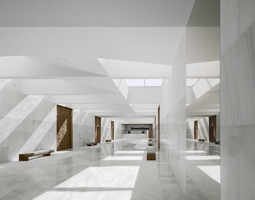 De ondergrondse uitbreiding van het museum is georganiseerd langs dezelfde centrale as die het paleis en het omringende landschap structureert. En zoals in het barokke landschapsontwerp de centrale as zelf leeg gelaten wordt en de ruimtes eromheen juist ingevuld zijn, zo is ook de centrale as in de ondergrondse uitbreiding leeg gelaten en liggen de zalen voor tijdelijke tentoonstellingen aan weerszijden hiervan. In die vijf meter hoge zalen is momenteel bijvoorbeeld een expositie