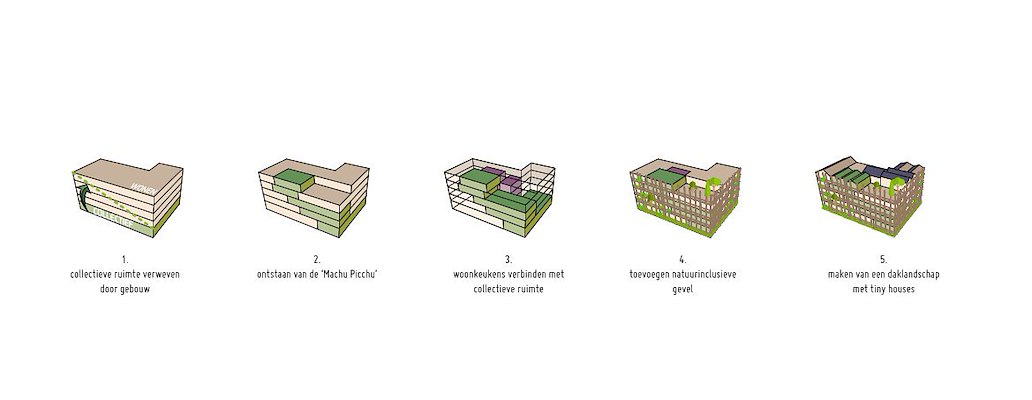 aan gemeenschappelijke ruimte. Kerngedachte achter het project was namelijk collectief wonen; in voorafgaande workshops kozen de toekomstige bewoners ervoor 30% van het gebouw te gebruiken voor gemeenschappelijke functies.