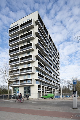 ontworpen gebouw in de Bakemabuurt telt 127 huurwoningen die onder meer bestemd zijn voor mensen met een essentieel beroep zoals leraar of verpleger. Het woonprogramma varieert van tweekamerappartementen tot tweelaagse bajonetwoningen.