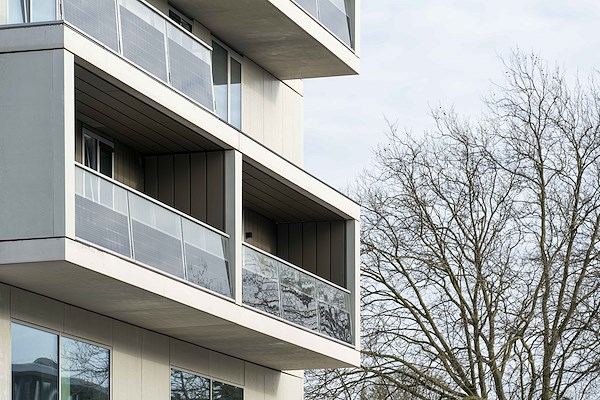 Het complex is geleed in een plint, middendeel en kroon. De gevel is opgebouwd uit kaders van lichte betonelementen met pui en metalen afwerking, in combinatie met houten geveldelen. De gevel is demontabel, waardoor de achtergelegen (warmteterugwin)installaties in de toekomst eenvoudig kunnen worden vernieuwd. Ook de woningen en de parkeerruimtes zijn aanpasbaar voor ander gebruik en dito indeling.