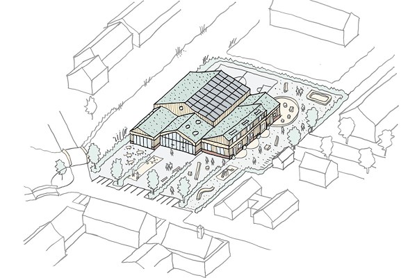 geselecteerd. Het gebouw krijgt een streekeigen vormgeving en biedt naast ruimte voor een basisschool, kinderdagverblijf en sporthal ook ruimte voor de buurtvereniging en een gemeenschappelijke zaal.