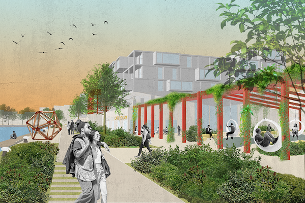 Het geheel ondergebracht in duurzame gebouwen. Er komt een ‘slim’ energiesysteem dat is gericht op het opwekken, opslaan en uitwisselen van energie. Bestaande gebouwen worden waar mogelijk behouden en materialen zo hoogwaardig en lokaal mogelijk hergebruikt. Daarnaast worden ontwikkelaars bij de aanbestedingstenders uitgedaagd om gebouwen toekomstbestendig te ontwerpen en te bouwen.