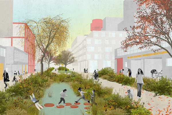 Om hittestress tegen te gaan is er ruimte voor koele verblijfsplekken en zal de buitenruimte worden ingericht met veel groen en weinig verharding, laat de gemeente Rotterdam weten.