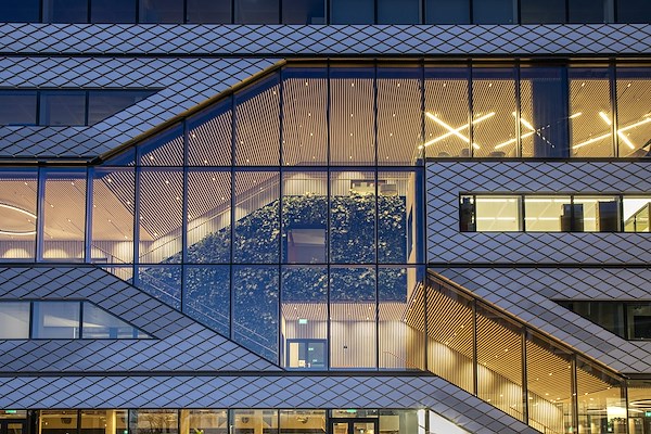 aan zonnepanelen op het dak. Verlichting en temperatuur regelen de gebouwgebruikers op hun werkplek via een app; daarnaast zijn er in werk- en collectieve ruimten bewegingssensoren. Dit draagt bij aan vermindering van het energieverbruik en optimalisatie van de systemen. De stroom voor kritieke laboratoriumapparatuur loopt via een apart circuit.