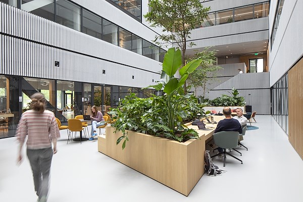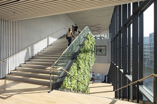 Alle trappen zijn voorzien van weelderige groene plantwanden, die ook zichtbaar zijn van buitenaf. Vilten afwerkingen van de muren verbeteren de akoestiek en zorgen voor een rustige en intieme sfeer. Per verdieping zijn er koffiebarretjes. Naast een restaurant en café in het atrium, heeft het gebouw een auditorium met honderd zitplaatsen en op de bovenste verdieping ‘Club Matrix’, een bar met uitzicht over het Science Park.