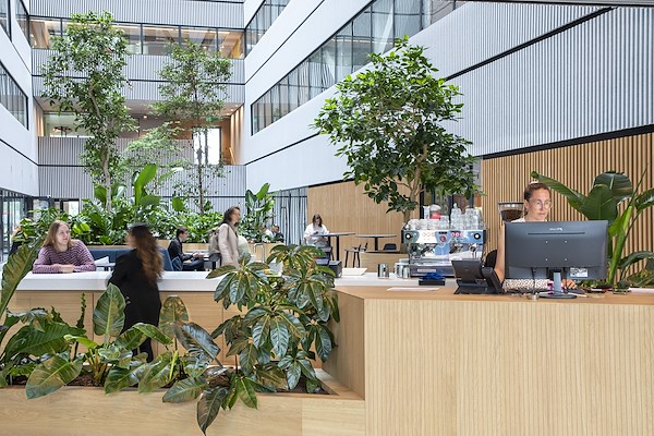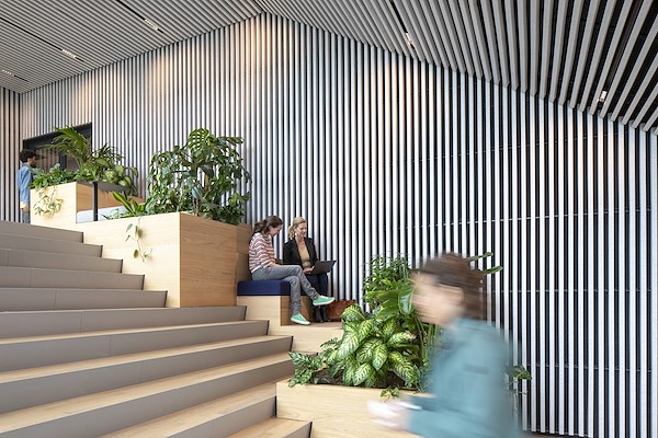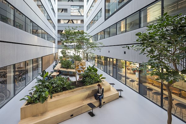 Daarnaast heeft MVRDV gestreefd naar een transparant en ‘sociaal’ gebouw. Het interieurontwerp, waarvoor het bureau heeft samengewerkt met up architecture, voorziet in vele plekken waar mensen kunnen werken of elkaar ontmoeten. Daartoe behoren bijvoorbeeld het open atrium met restaurant en de vele zitgelegenheden aan de brede, met hout beklede trappartij langs de gevel.