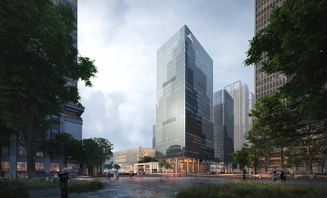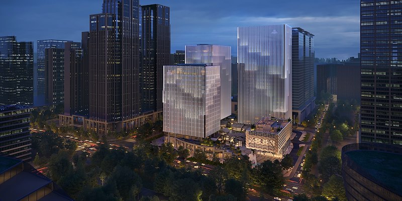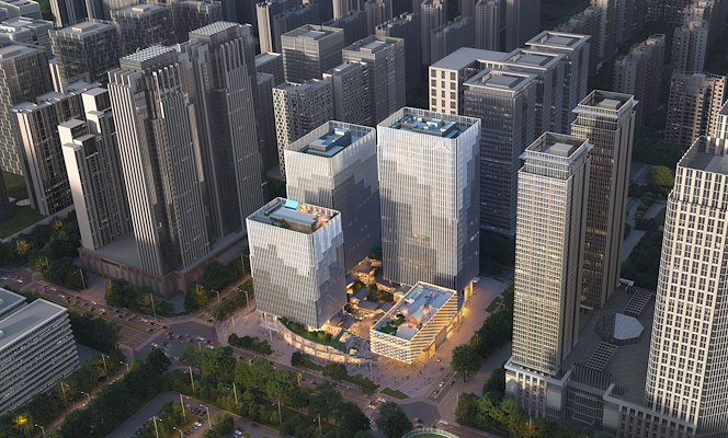 Op de laatste open plek in Chengdu’s Jiazi Park Financial and Business District is de bouw gestart van de Chengdu Jiaozi Courtyard Towers, een complex met kantoren, winkels en horeca naar ontwerp van